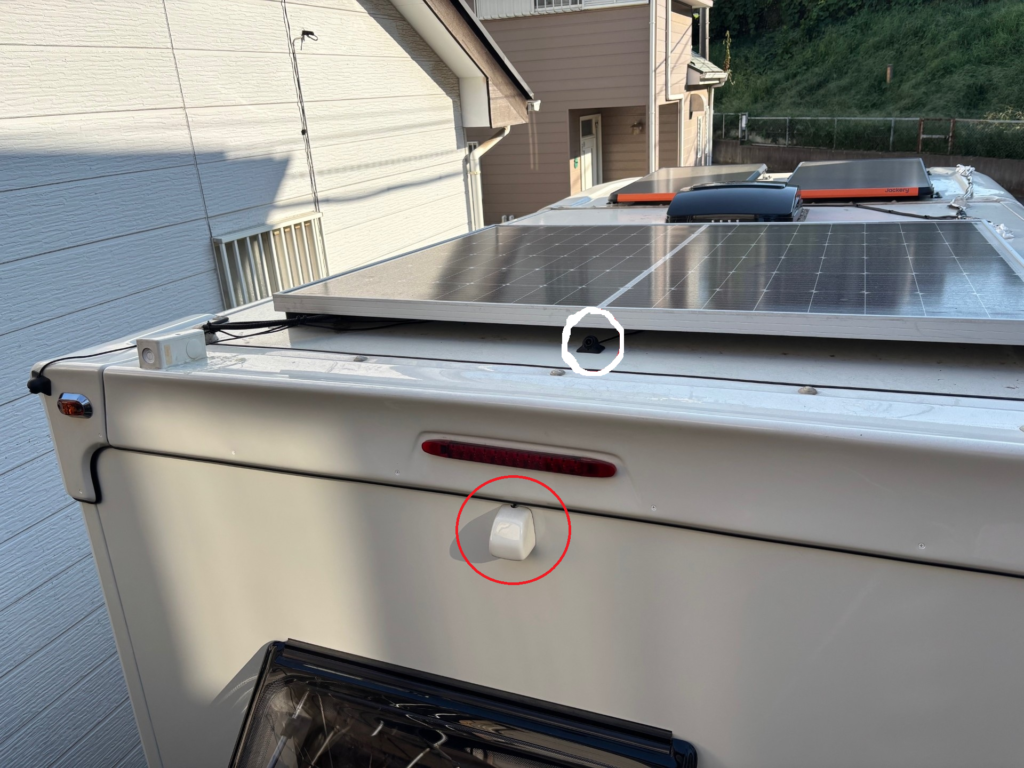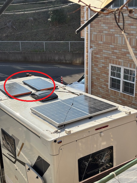 車体天井に280Wのソーラーパネルがついています。天候によりますが、サブバッテリーに10A~20A程充電する事ができます。