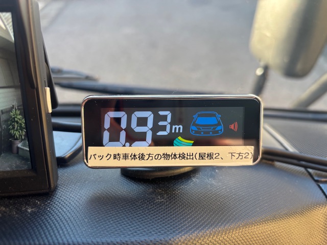 バック時に障害物があると、その障害物までの距離が表示されます(上図は0.93m)。また同時に距離に応じて周波数のかわるブザーがなります。